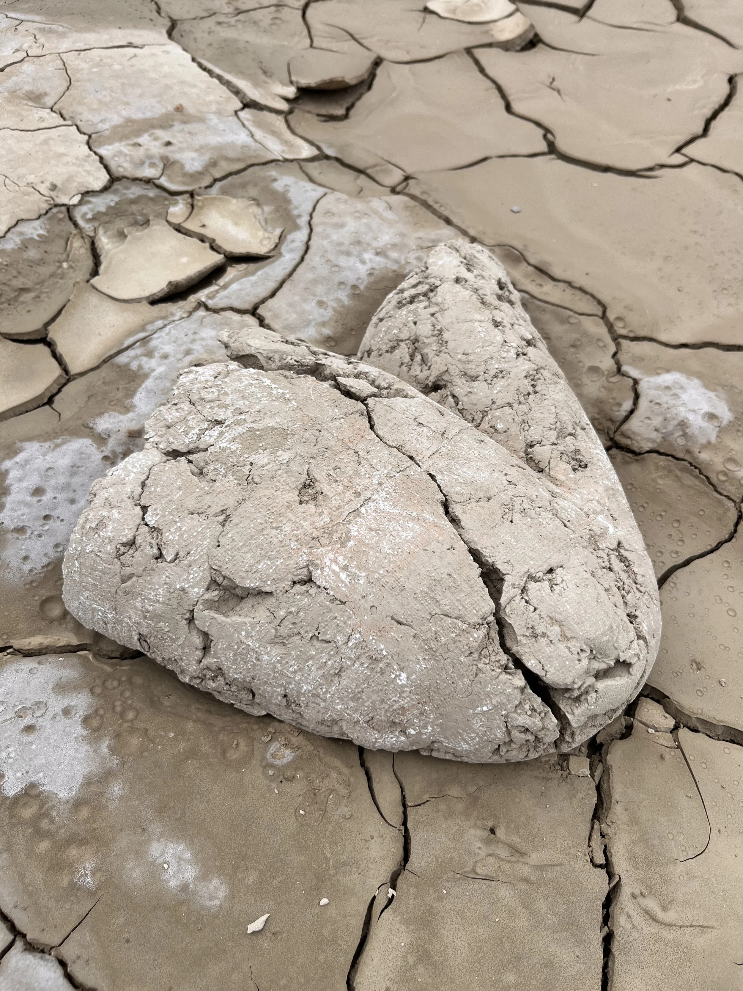cast of my left knee, ca. 35cm x 35cm x 15cm, clay from the Salinas de Curro, Blanca, Spain